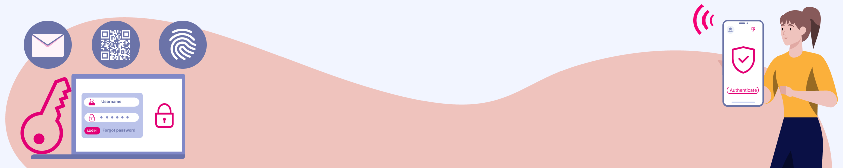 Neben dem Passwort wird beim Telekom Login noch ein weiterer Bestätigungsfaktor abfragt, um Sie eindeutig zu erkennen. Somit bietet die Mehr-Faktor-Authentifizierung einen kostenlosen zusätzlichen Schutz für Ihren Telekom Login bei der Nutzung von unseren Diensten, z. B. der MeinMagenta App.